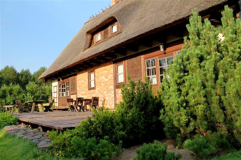 Posiadłość architektonicznie wkomponowana jest w klimat kaszubskich chat i miejscowego folkloru. Urocza i przytulna posesja składa sie z dwóch parterowych domów z użytkowym poddaszem (niepodpiwniczone), biesiadówki z poddaszem,domu gospodarczego, budynek do grilla, wędzarnia, piec do chleba, miejsce do biesiadowania oraz ziemianki do przechowywania, wina, przetworów, owoców i warzyw. Całość budowana w technologii tradycyjnej, dachy kryte strzechą. Pomieszczenia wykończone z materiałów naturalnych i wysokiej klasy materiałów wykończeniowych. Poszczegułne pomieszczenia wyposażono z dbałością o każdy szczegół, każde jest inne i posiada swój wyjatkowy klimat. Piece kaflowe dopełniają uroku klimatycznym wnętrzom. Istnieje też ogrzewanie alternatywne, podłogowe dla lubiących komfort. Kominek z rozprowadzeniem. Własne ujecie wody głębinowej. Szambo. Trudno oprzec się urokowi posesji na której sa piękne i zadbane nasadzenia a drzewa i krzewy zapewniają intymnośc z zewnątrz. Mam nadzieję że ta wyjątkowa nieruchomość znajdzie swego szczęśliwego nabywcę.