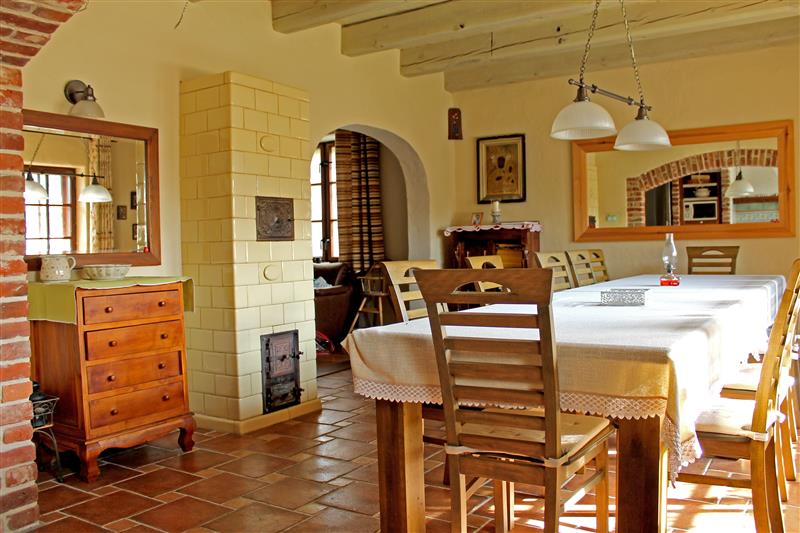 Posiadłość architektonicznie wkomponowana jest w klimat kaszubskich chat i miejscowego folkloru. Urocza i przytulna posesja składa sie z dwóch parterowych domów z użytkowym poddaszem (niepodpiwniczone), biesiadówki z poddaszem,domu gospodarczego, budynek do grilla, wędzarnia, piec do chleba, miejsce do biesiadowania oraz ziemianki do przechowywania, wina, przetworów, owoców i warzyw. Całość budowana w technologii tradycyjnej, dachy kryte strzechą. Pomieszczenia wykończone z materiałów naturalnych i wysokiej klasy materiałów wykończeniowych. Poszczegułne pomieszczenia wyposażono z dbałością o każdy szczegół, każde jest inne i posiada swój wyjatkowy klimat. Piece kaflowe dopełniają uroku klimatycznym wnętrzom. Istnieje też ogrzewanie alternatywne, podłogowe dla lubiących komfort. Kominek z rozprowadzeniem. Własne ujecie wody głębinowej. Szambo. Trudno oprzec się urokowi posesji na której sa piękne i zadbane nasadzenia a drzewa i krzewy zapewniają intymnośc z zewnątrz. Mam nadzieję że ta wyjątkowa nieruchomość znajdzie swego szczęśliwego nabywcę.