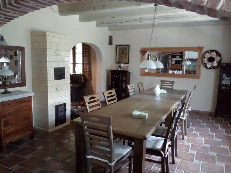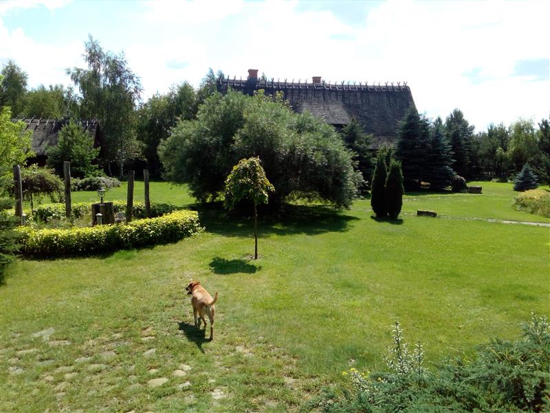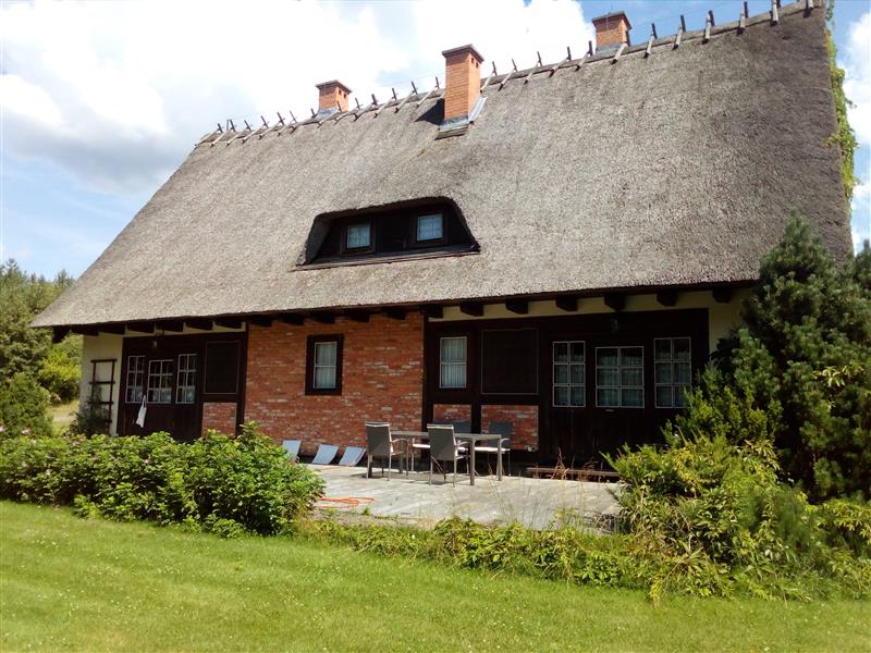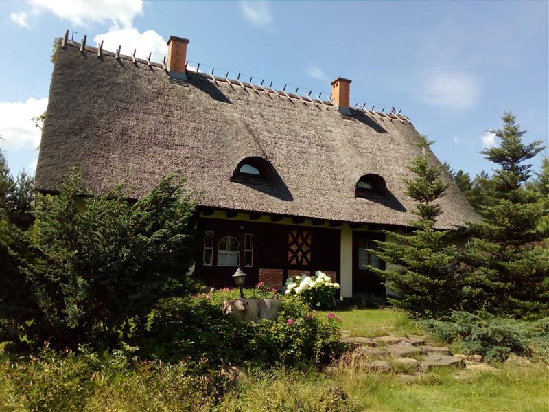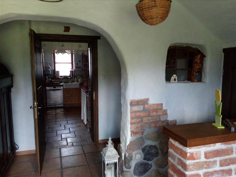 Posiadłość architektonicznie wkomponowana jest w klimat kaszubskich chat i miejscowego folkloru. Urocza i przytulna posesja składa się z trzech parterowych domów z użytkowym poddaszem (niepodpiwniczone), domu gospodarczego (który można zaadoptować na mieszkalny), budynek biesiadny, wędzarnia, piec do chleba, miejsce do biesiadowania oraz ziemianki do przechowywania, wina, przetworów, owoców i warzyw. Całość budowana w technologii tradycyjnej, dachy kryte strzechą. Pomieszczenia wykończone z materiałów naturalnych i wysokiej klasy materiałów wykończeniowych. Poszczegółne pomieszczenia wyposażono z dbałością o każdy szczegół, każde jest inne i posiada swój wyjatkowy klimat. Piece kaflowe dopełniają uroku klimatycznym wnętrzom. Istnieje też ogrzewanie alternatywne, podłogowe dla lubiących komfort. Kominek z rozprowadzeniem. Własne ujęcie wody głębinowej. Szambo.